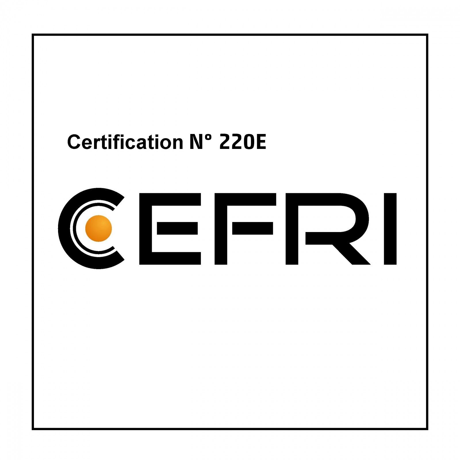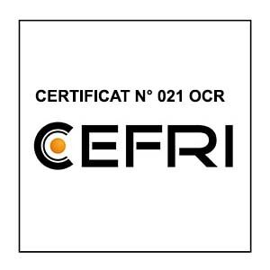 Certification selon la charte CEFRI E. Certificat N° 220ELe CEFRI reconnait à travers les certificats de type “E” qu’il délivre la capacité d’une entreprise à effectuer des travaux sous rayonnements ionisants et à satisfaire aux exigences réglementaires applicables.